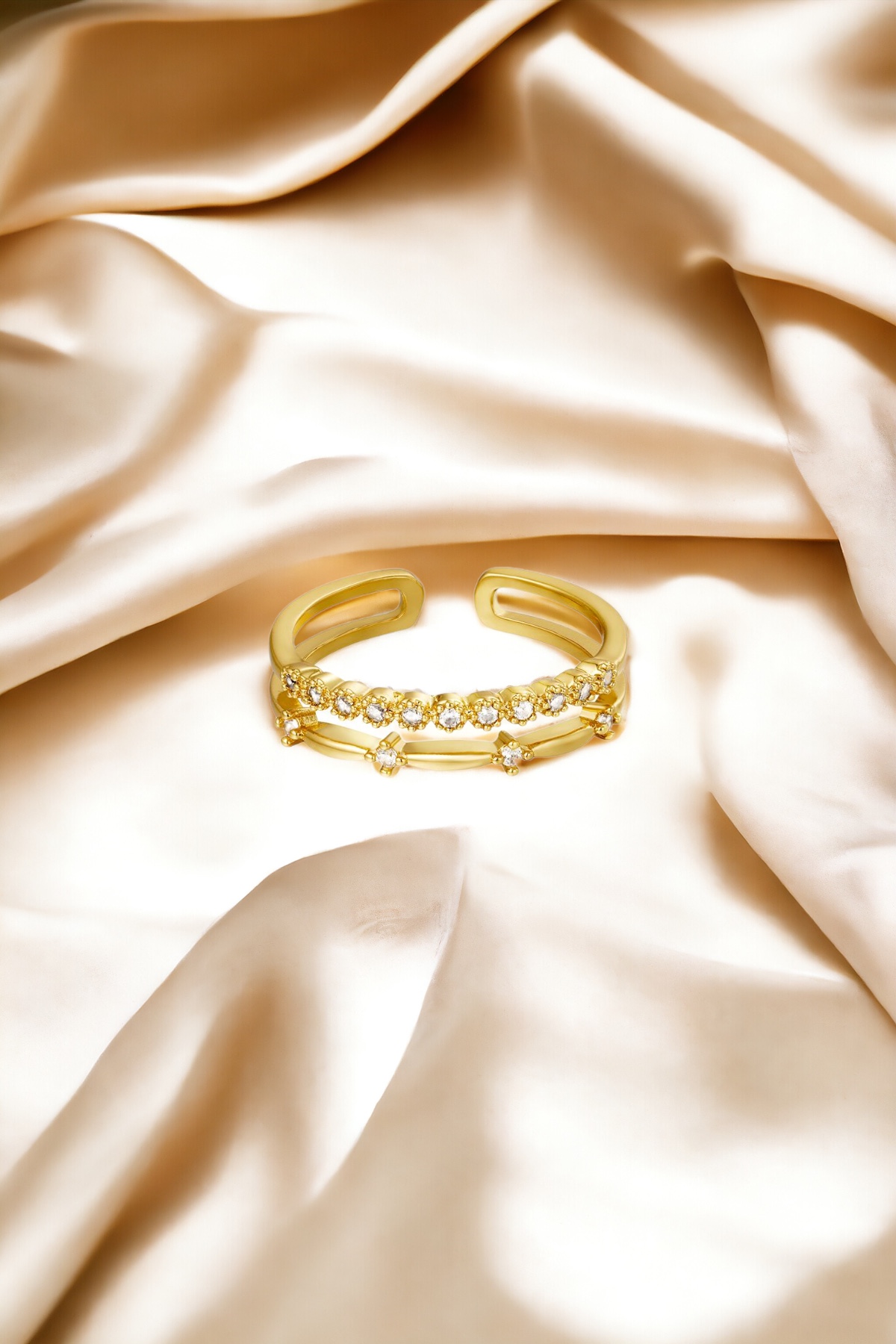 Entdecken Sie die zeitlose Eleganz dieser schlichten Ringe mit Zirkoniasteinen. Jeder Ring ist aus hochwertigem Edelstahl gefertigt und mit einer luxuriösen 14k Vergoldung veredelt, was ihm einen Hauch von Raffinesse verleiht. Die funkelnden Zirkoniasteine fangen das Licht ein und sorgen für einen subtilen, dennoch glamourösen Glanz.